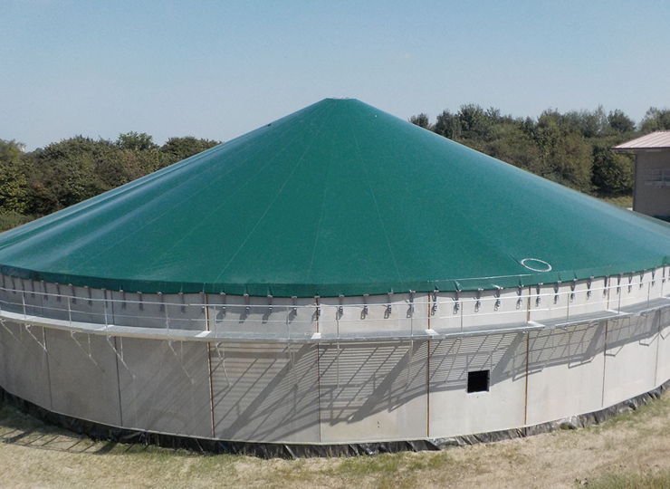 Our tailor-made emission protection covers, which are braced via a centre support, are an ideal solution for your slurry tank. They ensure effective protection against emissions and are equipped with a practical inspection and service opening, which we can also supply in larger versions on request.